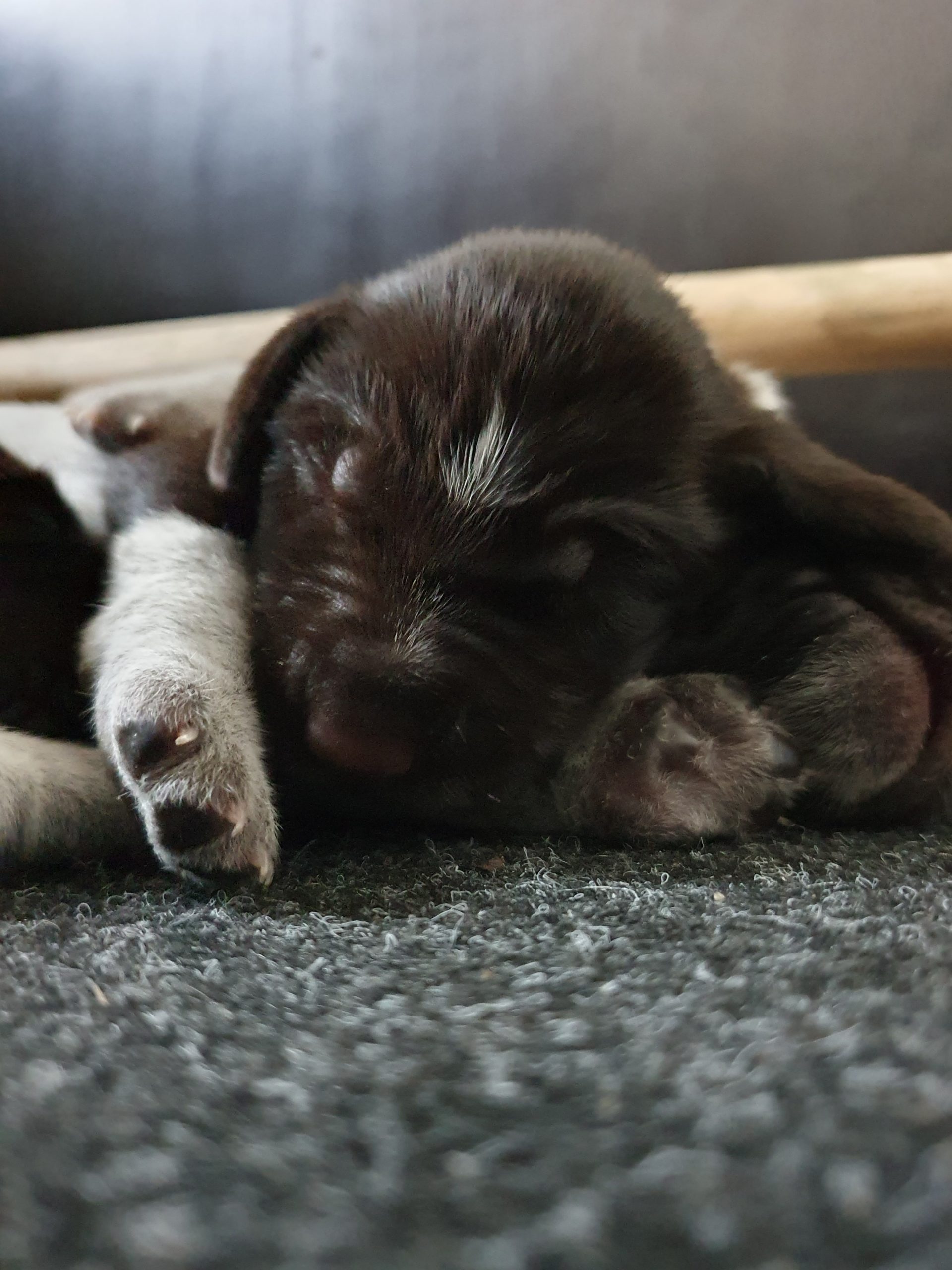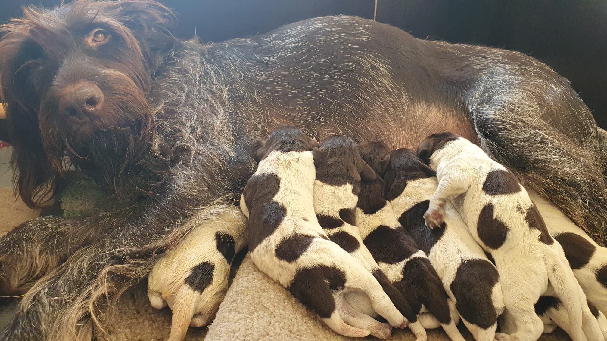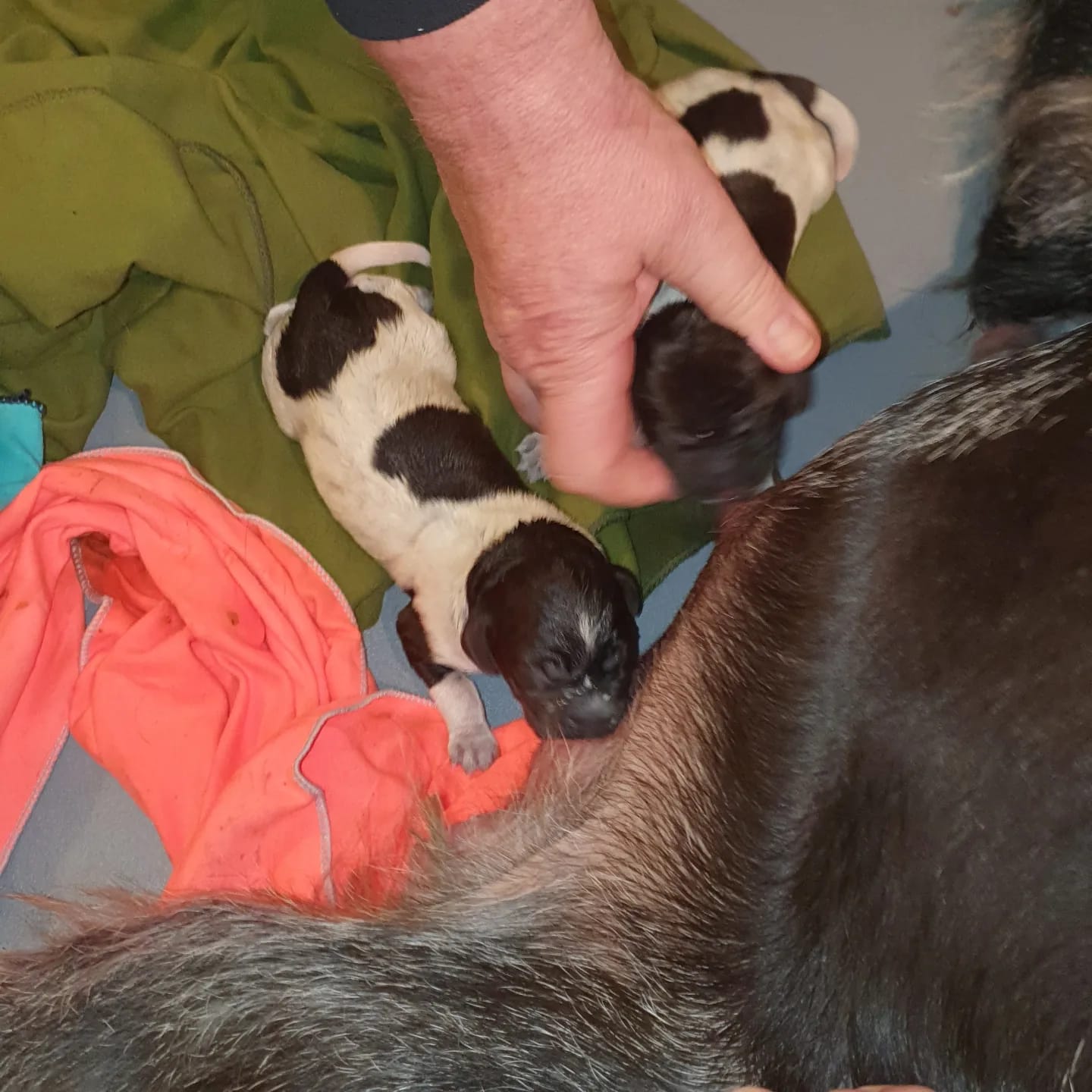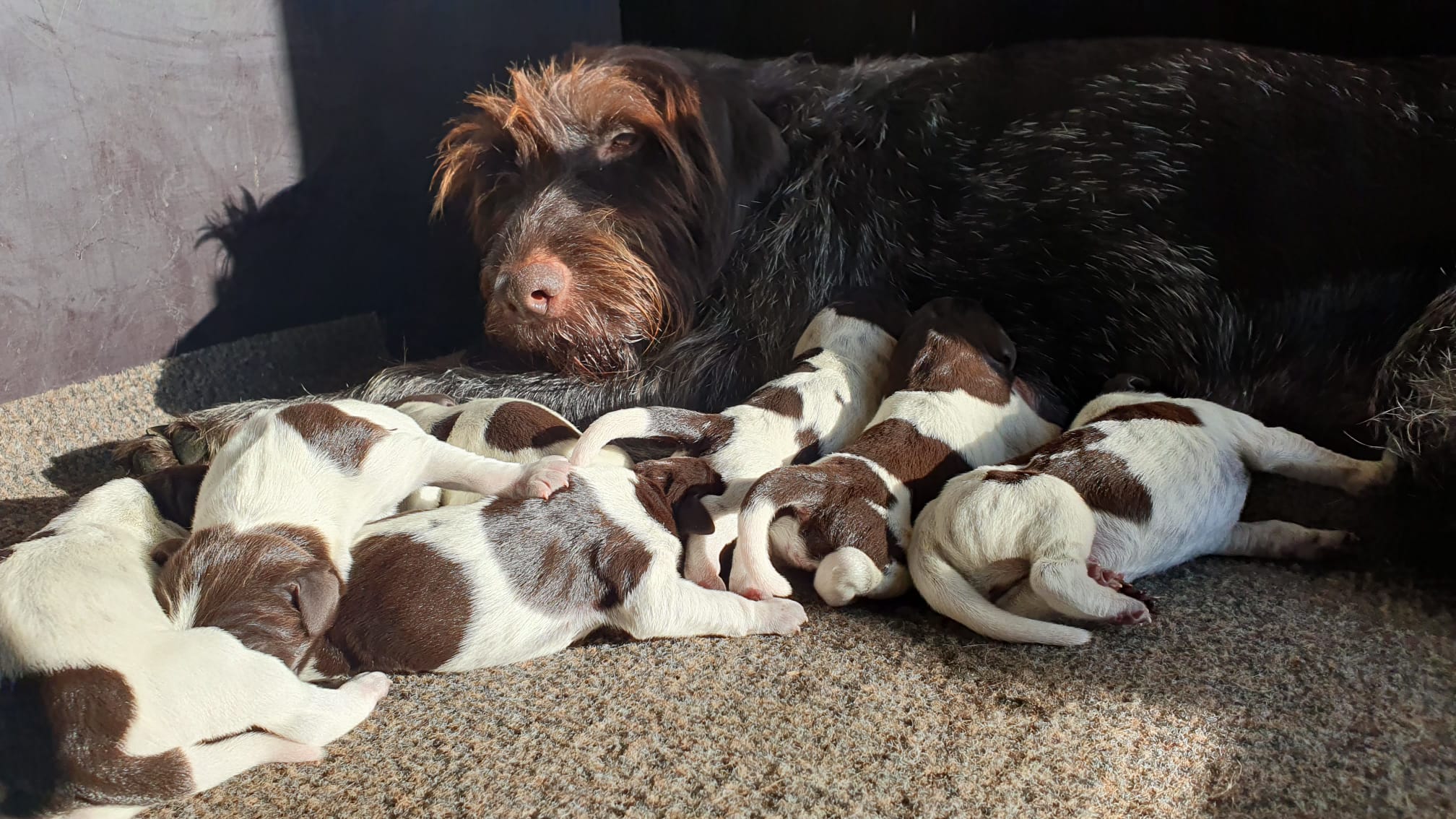 Am 7.1. haben wir um 5:25 Uhr den ersten Welpen (Odin vom Dyckerland) zur Welt gebracht. Der letzte Welpe (Onja vom Dyckerland) kam um 11:27 Uhr zur Welt. Unsere Luna hat das sehr gut gemacht und hat keine ärztliche oder andere Unterstützung benötigt. Sie hat die Welpen angenommen und sehr gut versorgt. Alle Welpen und Mutti sind wohlauf.